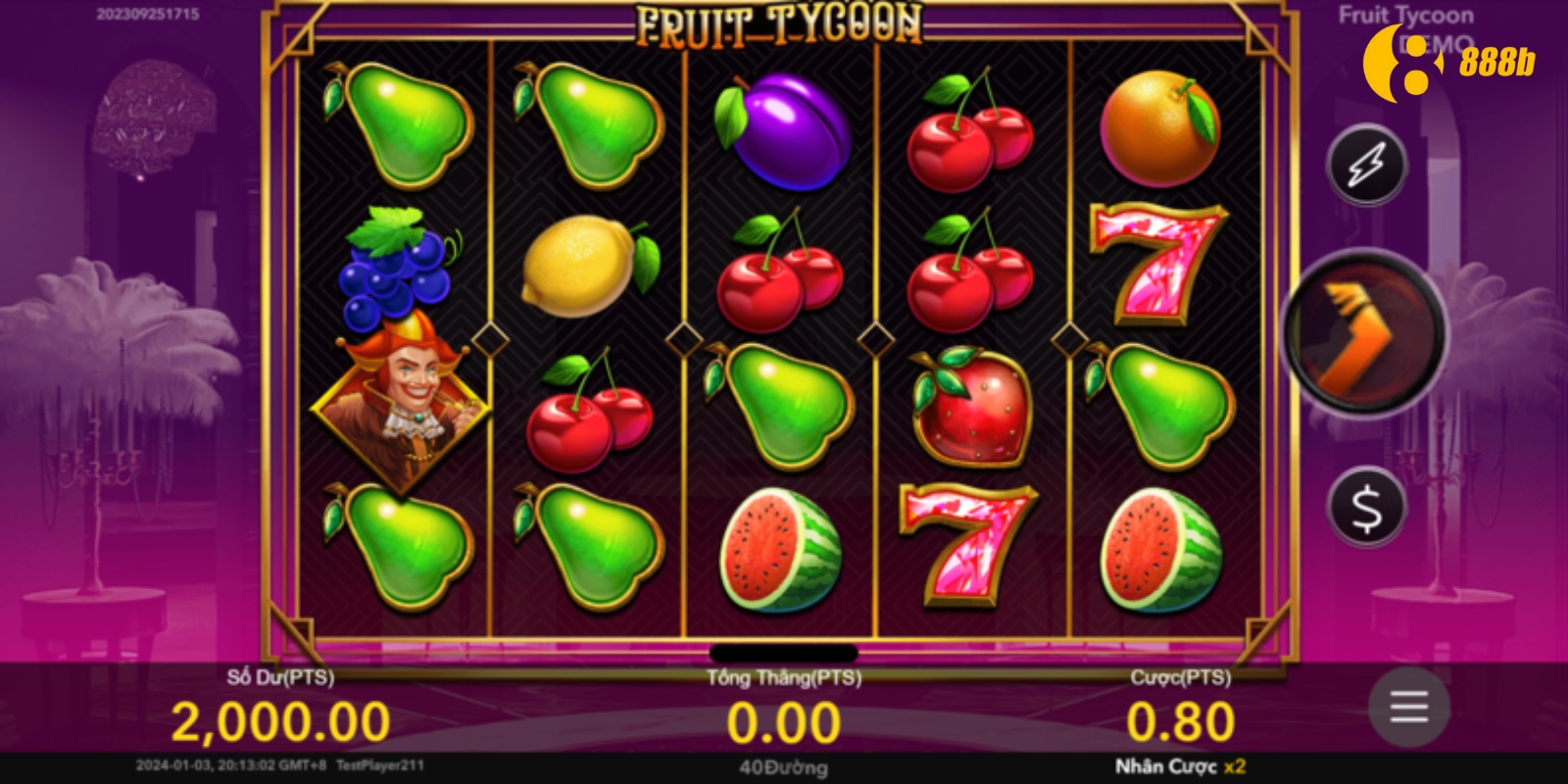 Để thắng lớn tại 888B, bạn cần ghi nhớ các tổ hợp biểu tượng: Táo, Dưa hấu, Chuông, Quýt, Đu đủ và Ngôi sao.